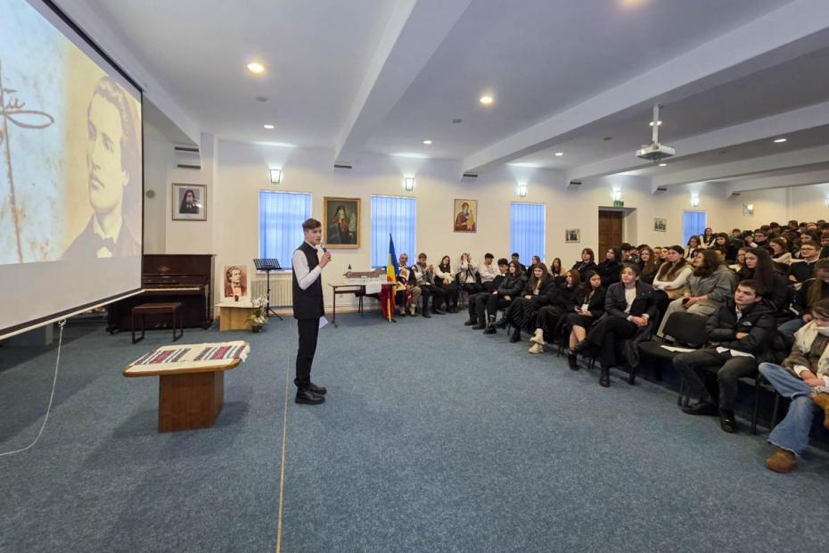 Manifestările au debutat sub auspiciile unei profunde înțelegeri a mesajului poetic. Elevii claselor a X-a (Teologie Ortodoxă) și a XII-a (Patrimoniu Cultural) au susținut un recital care a depășit simpla declamație, devenind o mărturisire de credință în valorile estetice naționale. Atmosfera a fost înnobilată de prezența corului „Victor Ojog”, coordonat de pr. prof. Marius Brumă. Interpretările corale pe versuri eminesciene au creat un cadru solemn, demonstrând că poezia lui Eminescu posedă o muzicalitate intrinsecă ce rezonează firesc în spațiul ecleziastic.